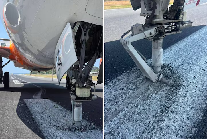 Sources said the nose landing wheel broke off, and the aircraft briefly slid along the runway before coming to a stop. Photographs from the scene showed the detached nose wheel lying on the runway.