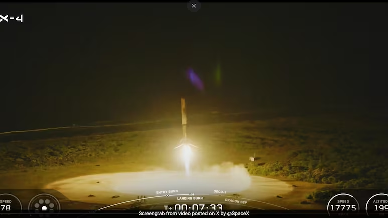 Just under eight minutes after lifting off from NASA’s Kennedy Space Center in Florida, the SpaceX Falcon 9 rocket successfully returned to Earth, having launched four astronauts — including India’s Group Captain Shubhanshu Shukla — into space aboard the Crew Dragon capsule.